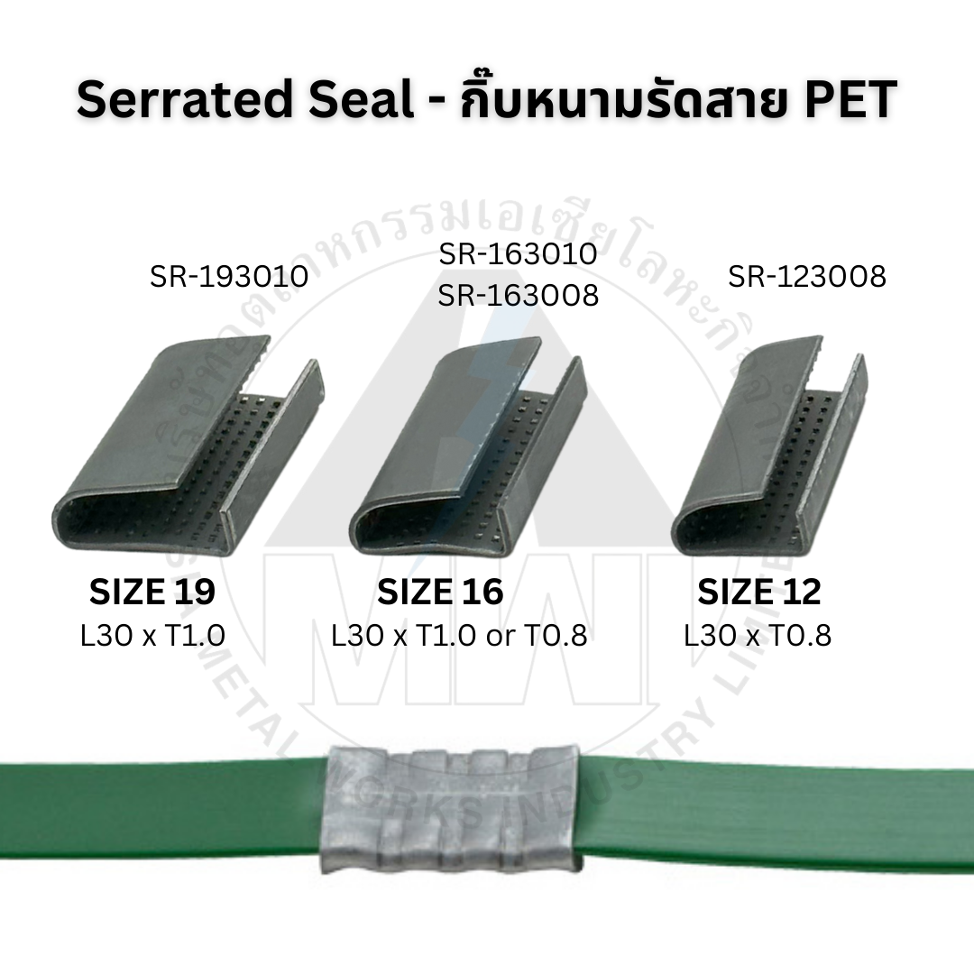 ดังนั้นขีดความสามารถในการรอบรับแรงดึงได้เยอะหรือน้อยไม่ได้ขึ้นอยู่กับคุณภาพวัสดุของสายรัดPETแค่เพียงอย่างเดียว แต่รวมไปถึงความแข็งแรงของหนามที่อยู่ด้านในกิ๊บเหล็กรัดสายserrated seal